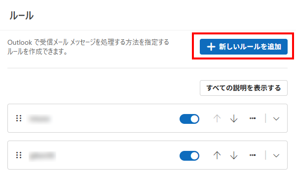 - 「ルール」ページの中の「+新しいルールを追加」ボタンを押します。
