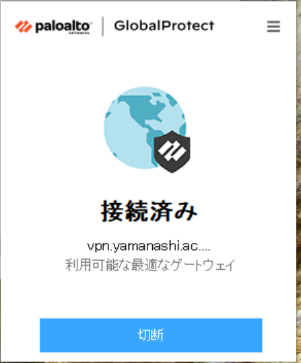 - インストールが完了すると、タスクトレイにGlobalProtectのアイコンが表示されます。