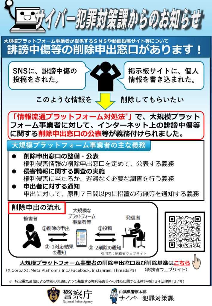 誹謗中傷等の削除申出窓口があります!