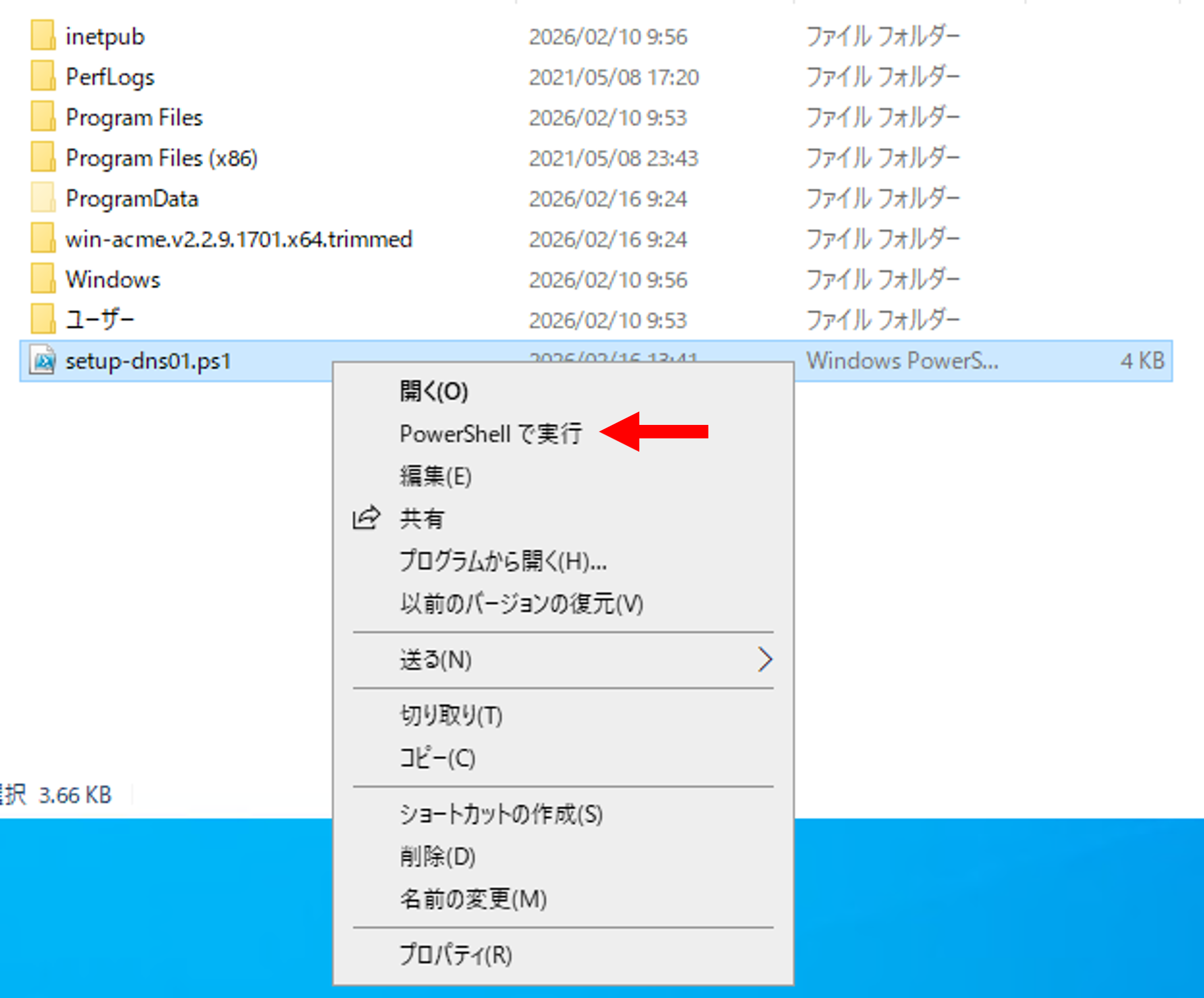 情報システム課から提供したDNS01チャレンジ準備用のPowerShell(setup-dns01.sh)を実行します。